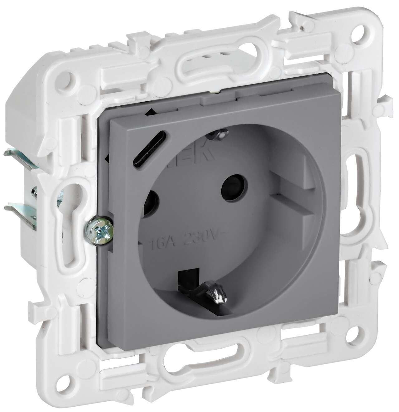 Розетка STEKKER PST16-9011-01 (расстояние между монтажн. отвер-ми: 66*66мм) на 1+USB гнездо, с заземлением. Материал: PP пластик/ABS пластик, латунь,..