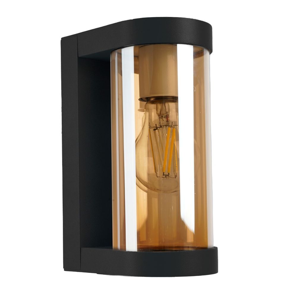 Светильник садово-парковый, серии «Бостон», (НБУ) FERON DH1901 E27, 230V, IP44, цвет черный/янтарный, цилиндр, на стену , 125*92*206мм..
