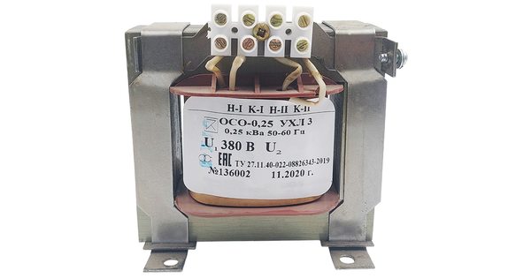 Трансформатор понижающий ОСО – однофазный, сухой, предназначен для питания пониженным и безопасным напряжением переносных светильников, ламп местного ..