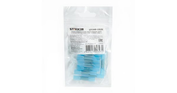 Термоусадочные коннекторы STEKKER LD302-15-25, длина 40мм. 10шт. в наборе, цвет: прозрачный, голубой. Коэффициент усадки 2:1, диапазон рабочих темпера..