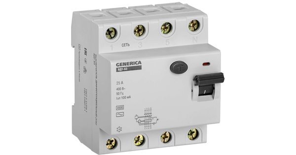 Быстродействующий защитный выключатель ВД1-63 (УЗО) GENERICA - устройство электронного типа, зависящее от напряжения и реагирующее на дифференциальный..