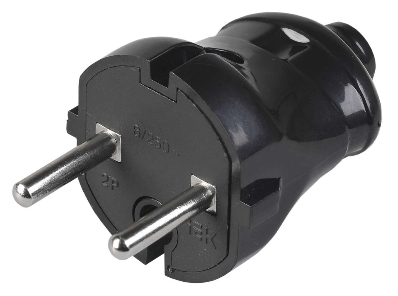 Вилка с защитным контактом бытовая SCHUKO - Вилка электрич. угл. однофазная (каучук) UNIVersal в каталоге магазина ЭлектроОМ Электросервис - широко пр..