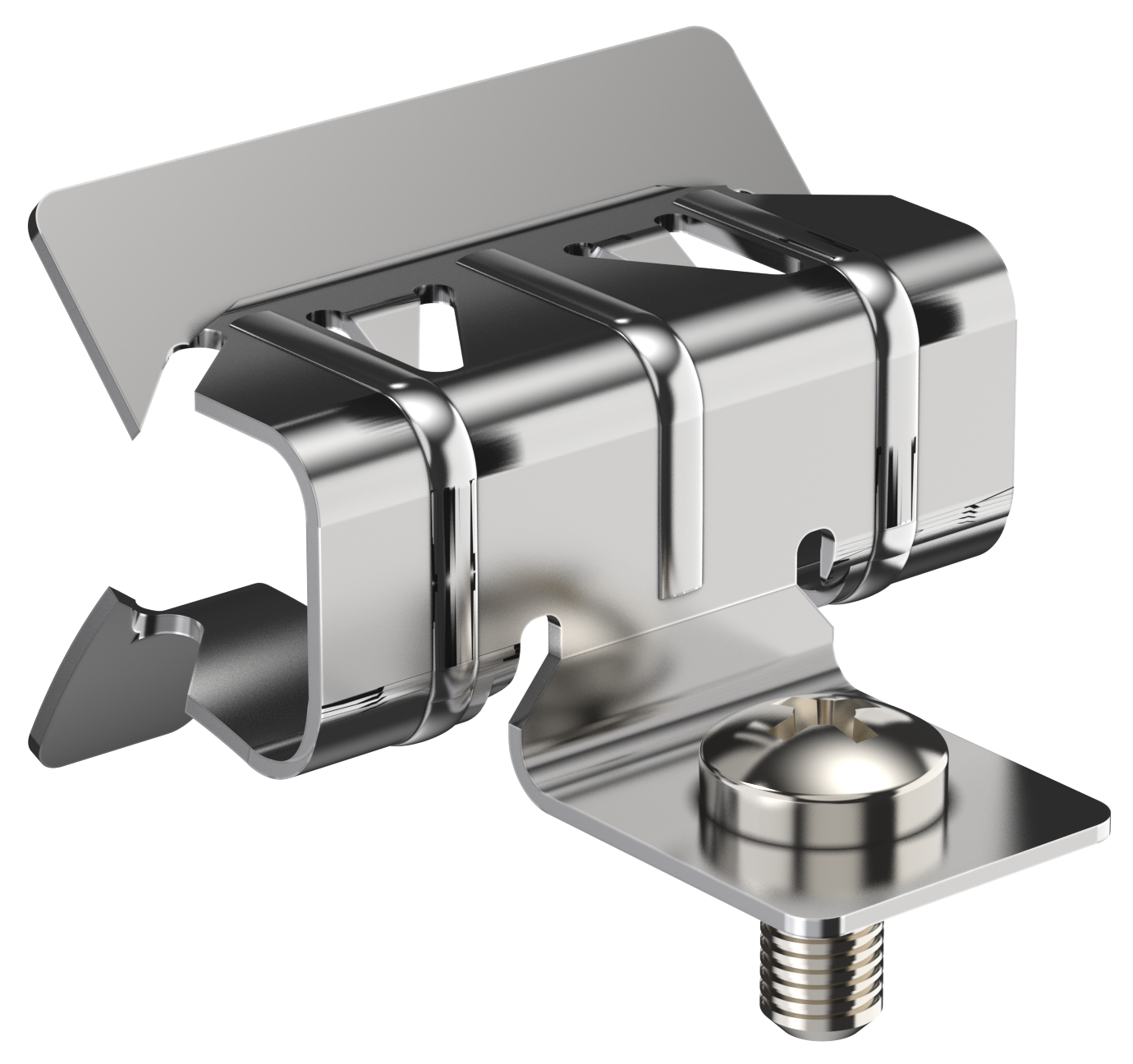 Держатель проводника круглого для плоской кровли с болтовым зажимом предназначен для закрепления прутка на плоской или наклонной кровле. Держатель кре..