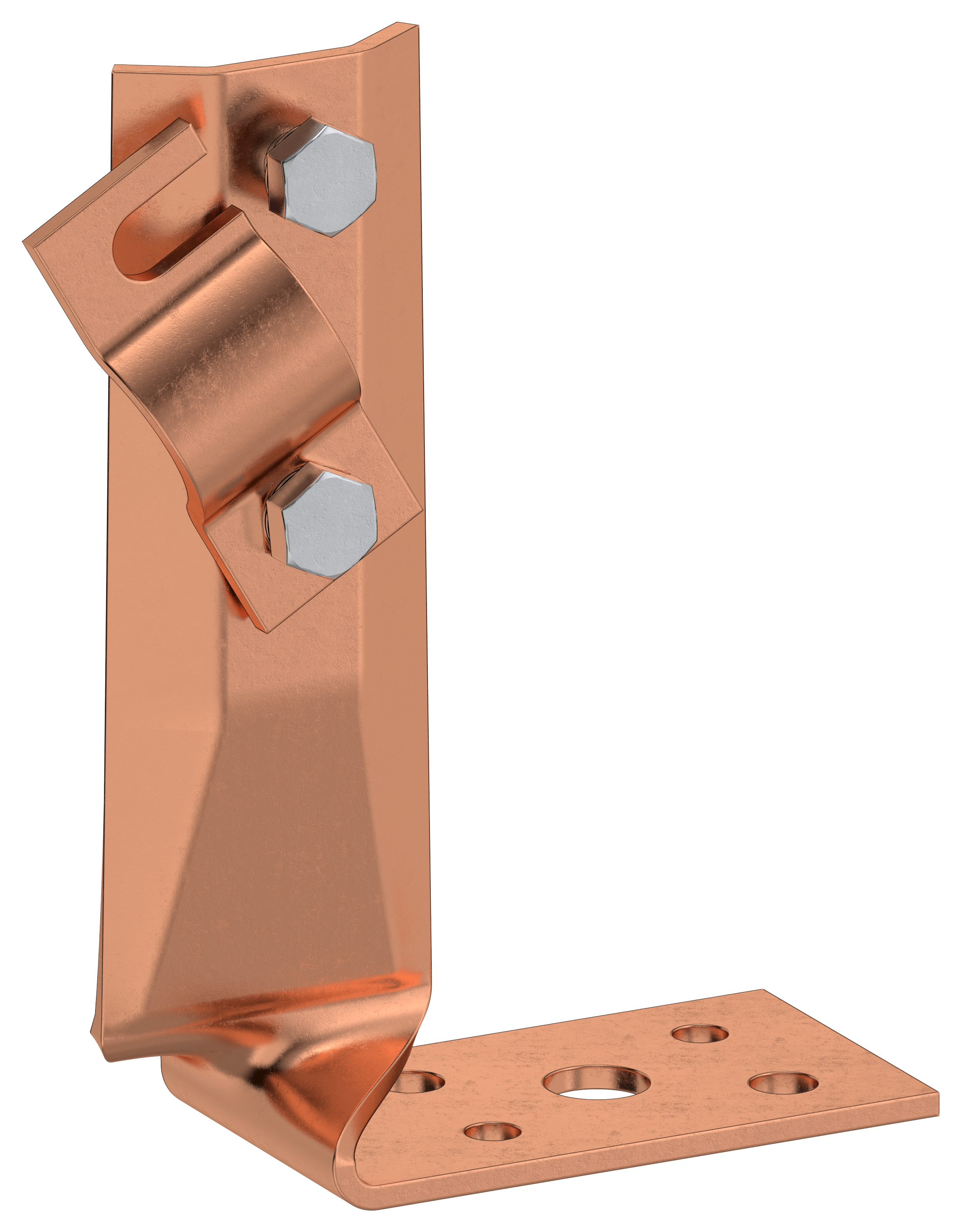 Держатель проводника круглого для конька с болтовым зажимом широкий предназначен для закрепления прутка на коньке скатной кровли. Держатель крепится к..
