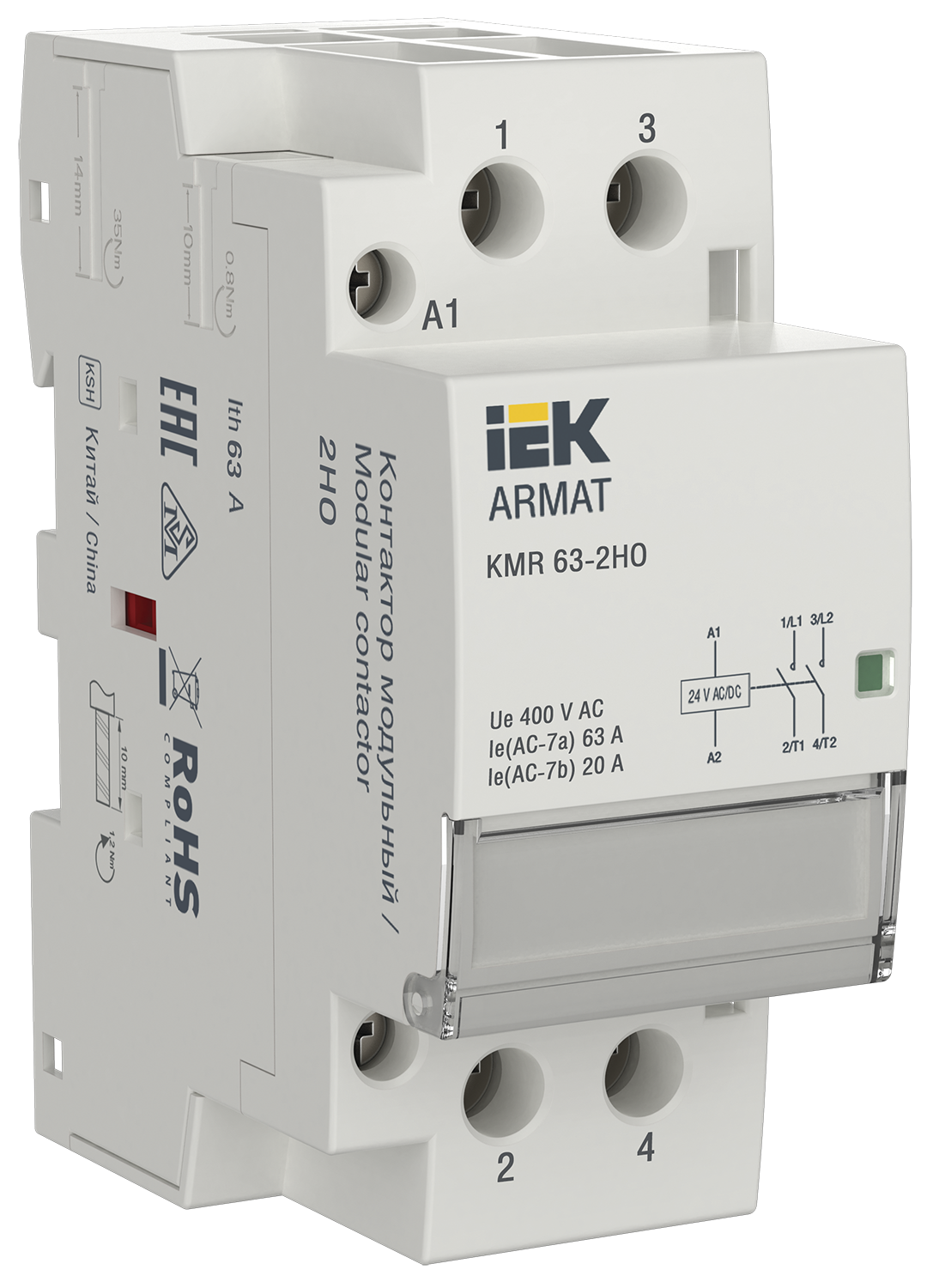 Контакторы модульные типа КМ торговой марки IEK предназначены для применения в сетях переменного тока напряжением до 400 В частоты 50 Гц и служат для ..