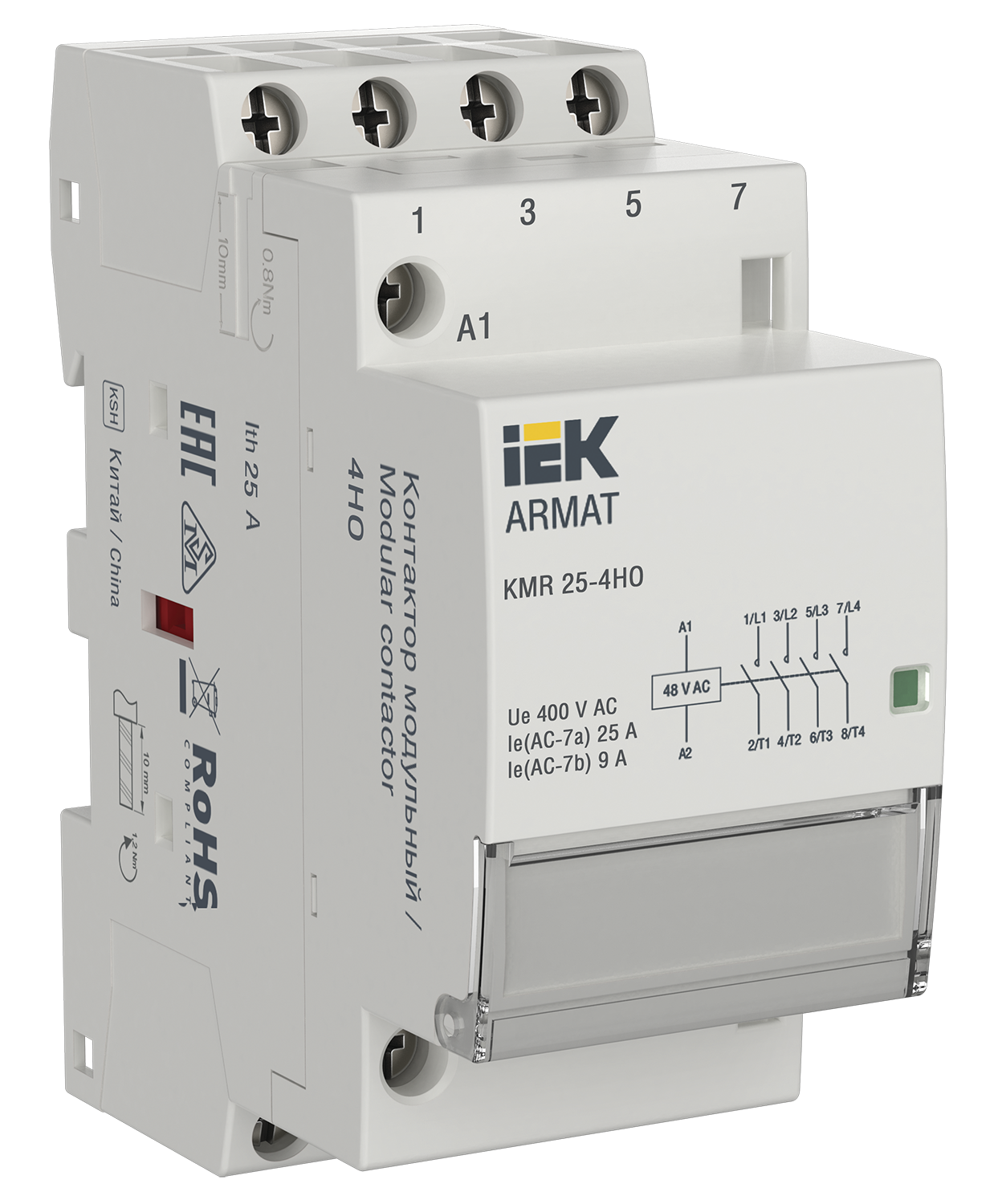 Контакторы модульные типа KMR ARMAT разработаны специально для коммутации цепей освещения, управления системами отопления, электродвигателями и насосн..