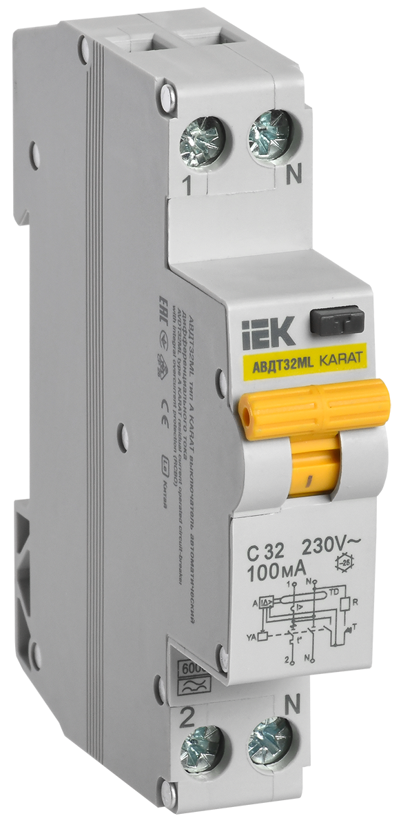 Автоматические выключатели дифференциального тока АВДТ32МL для однофазных сетей в одномодульном исполнении (18мм) предназначены для защиты человека от..