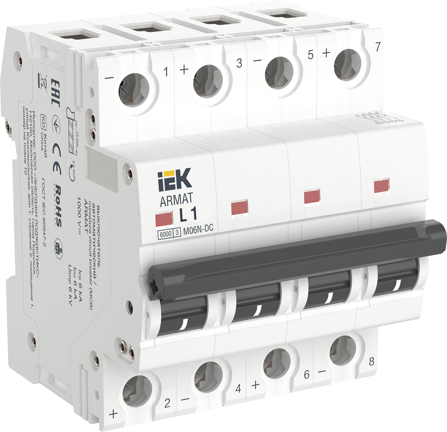 Автоматические выключатели ARMAT серии M06N-DC предназначены для коммутации электрических цепей постоянного тока с номинально рабочим напряжением до 1..