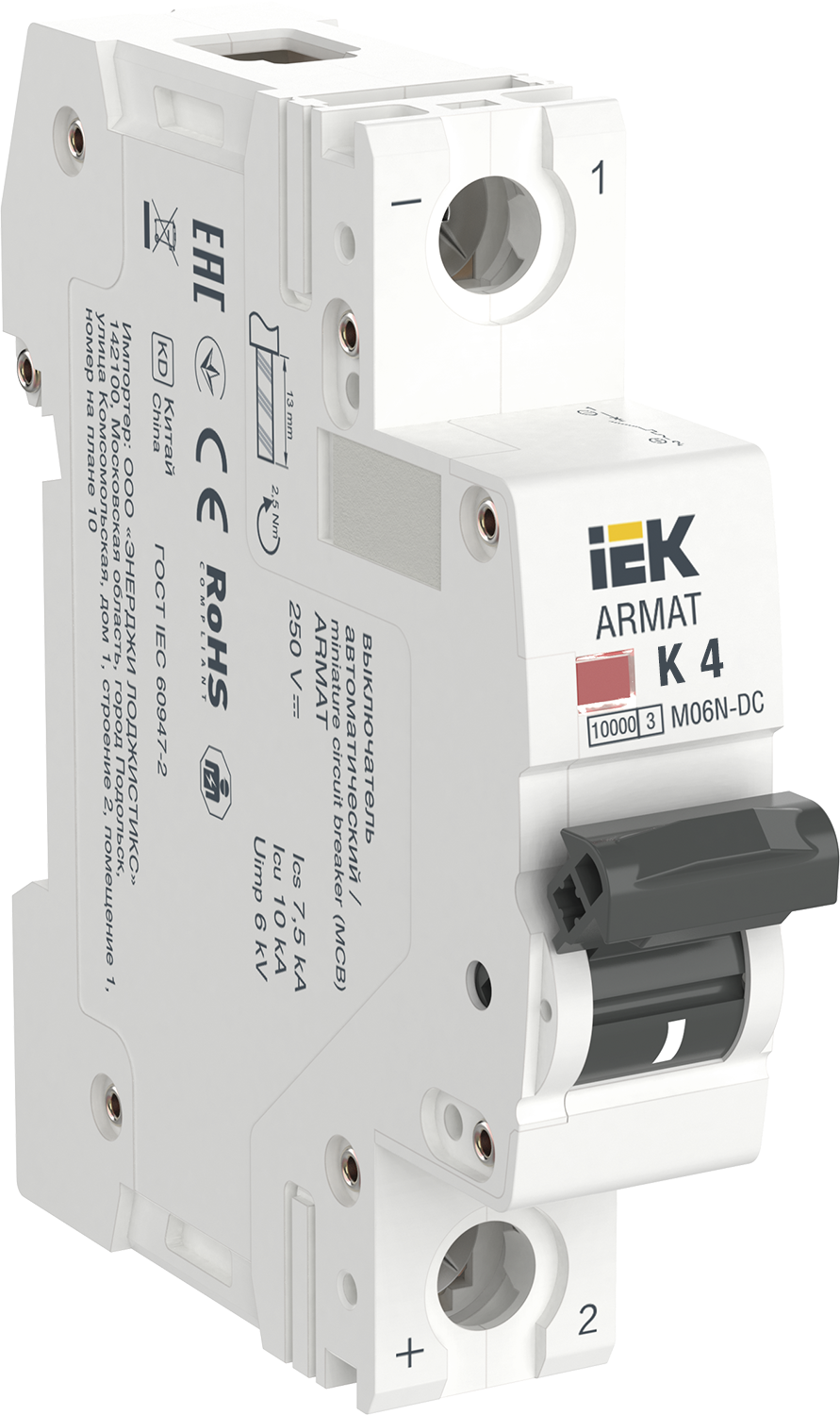 Автоматические выключатели ARMAT серии M06N предназначены для коммутации электрических цепей постоянного тока с напряжением до 1000 В. Защищают от ток..