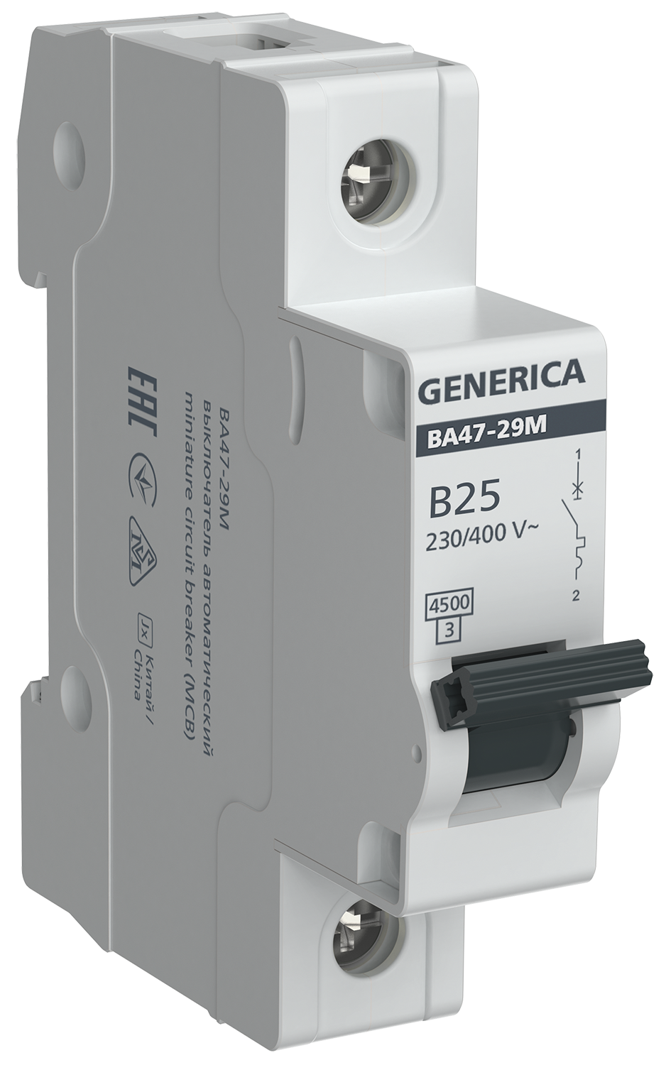 Автоматические выключатели ВА47-29M GENERICA предназначены для защиты распределительных и групповых цепей, имеющих различную нагрузку: – электроприбор..