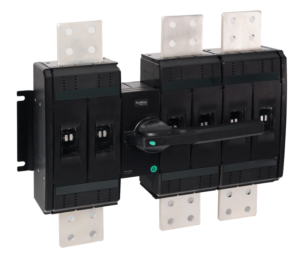 Выключатели-разъединители серии SystemePact SP SD на токи 1250А, 3P, рукоятка – фронтальная, установка – на монтажной плате. Аппараты SystemePact SP S..