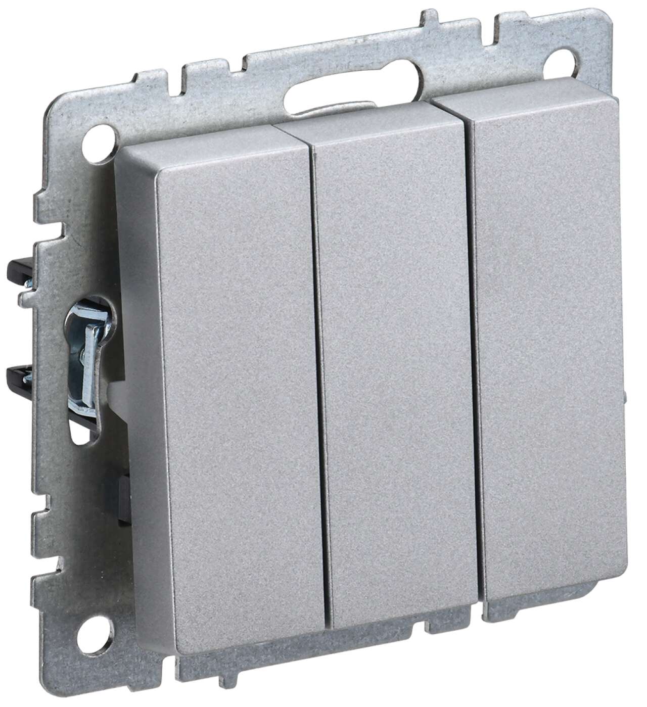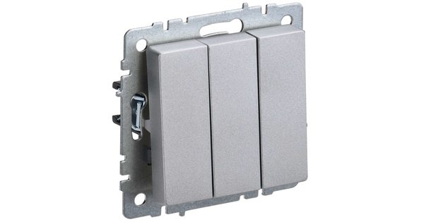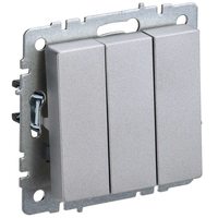 Выключатель трехклавишный Inspiria для скрытого монтажа, цвет "Алюминий", увеличенный номинальный ток 20 А, напряжение ~250В. Предназначен для установ..