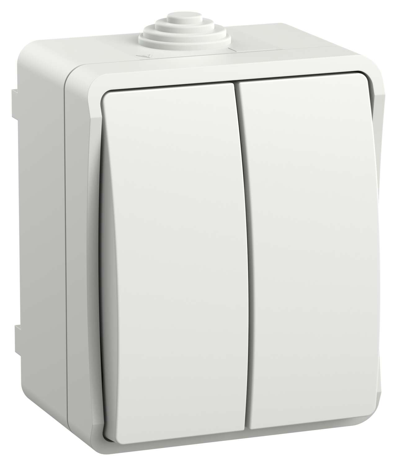 Выключатели двухклавишный STEKKER PSW10-221-54, серия Велена тип установки - открытый, размер изделия 63*75*53мм., цвет белый+серый, материал изделия ..