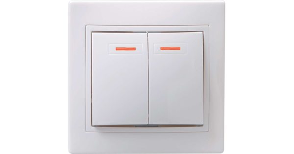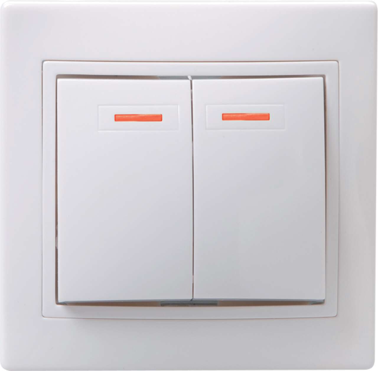 Переключатель с подсветкой двухклавишный ETIKA для скрытого монтажа, номинальный ток 10 А. Предназначен для управления двумя нагрузками с одного или с..