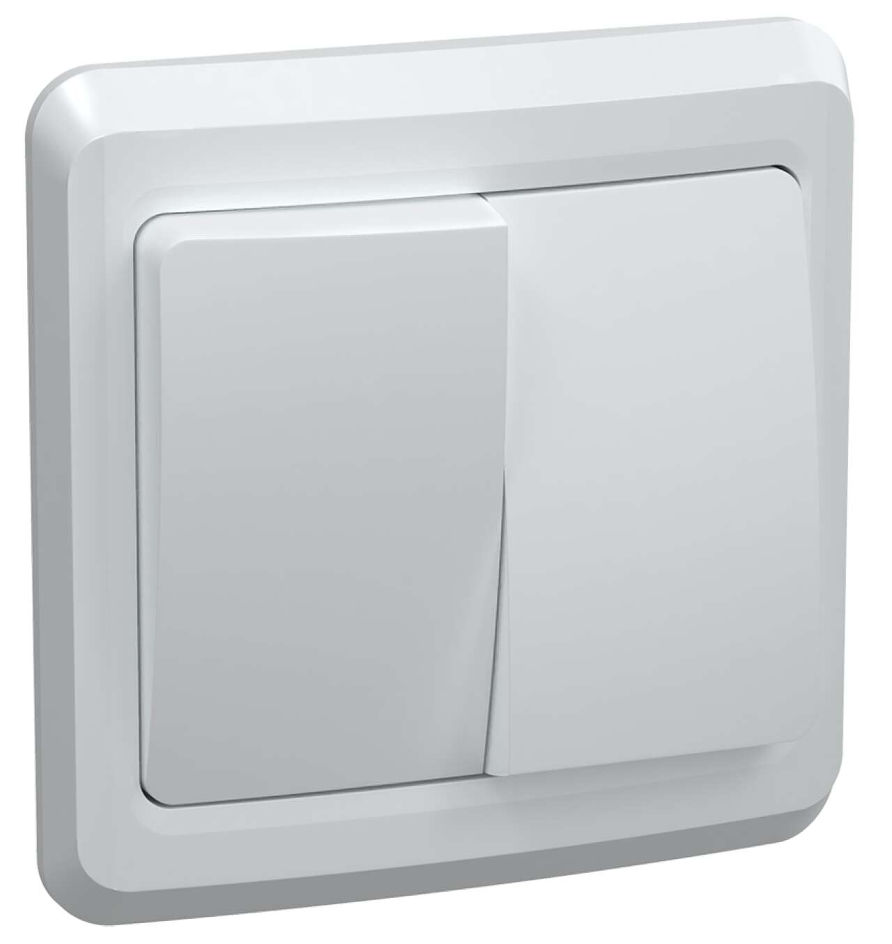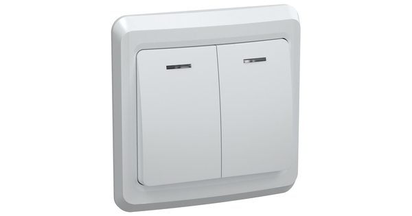 Электроустановочные изделия Legrand проверенных производителей и брендов. Заказывайте Выключатель 2 клавишный с подсветкой белый Kaptika 10А по низкой..