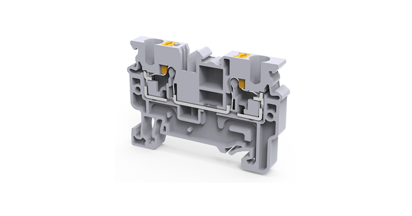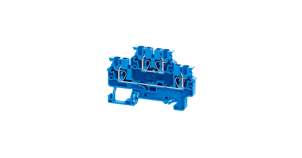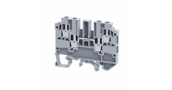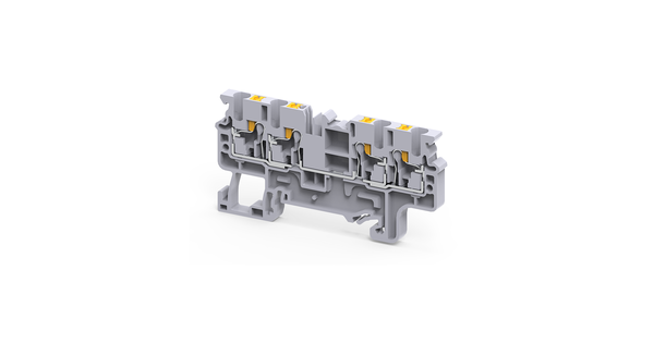 Клемма проходная типа push-in с 4-мя выводами на номинальное сечение проводника 2,5 кв. мм. Предназначена для установки в распределительных шкафах и щ..
